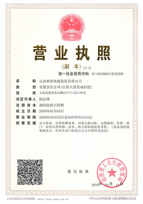 山西和諧電器發(fā)展有限公司是中國輸變電和控配電行業(yè)的大型制造企業(yè),中國明星企業(yè),全國質(zhì)量管理優(yōu)秀企業(yè),山西省高新技術(shù)企業(yè)。公司地處太原市高新國際大廈。